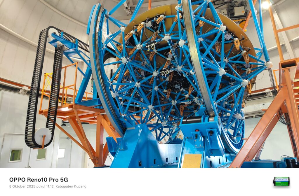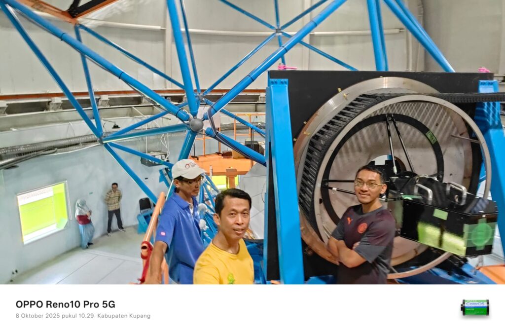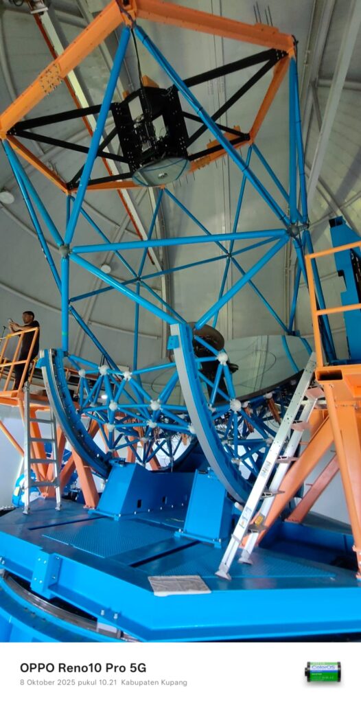 Fasya Media Center – Kupang, Nusa Tenggara Timur — Sejarah baru astronomi Indonesia sedang ditulis dari langit timur Nusantara. Pada tanggal 7–11 Oktober 2025, tim peneliti Badan Riset dan Inovasi Nasional (BRIN) bersama Mr. Otani, engineer optik dari Kyoto University, Jepang, melaksanakan tahap Engineering First Light Teleskop Timau, teleskop optik terbesar di Asia Tenggara. Kegiatan ini menjadi momen penting untuk menilai ketepatan sistem optik, kesejajaran cermin, serta stabilitas mekanik teleskop berdiameter 3,8 meter yang dibangun di Observatorium Nasional Timau, Kabupaten Kupang, Nusa Tenggara Timur. Tahap engineering first light merupakan langkah fundamental sebelum teleskop benar-benar siap digunakan untuk pengamatan ilmiah (scientific first light).